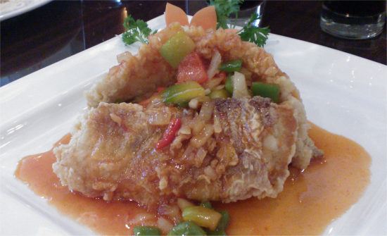 Nathan went with a chef’s specialty of crispy red snapper, which was beautifully presented: